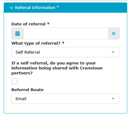 Date of Referral: This should be the date that we received the referral, not the date the referral form was completed.