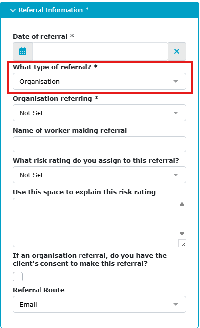 Risk Rating: Did they assign a risk rating to the case? This is NOT our risk rating of the case and should only be completed if the referrer specifies one.