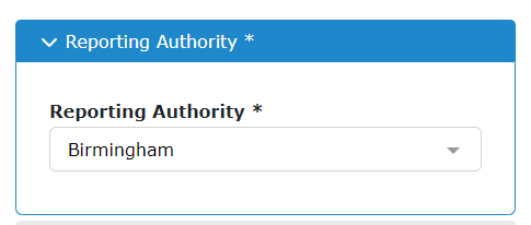 This should be set to the local authority under which this case has been opened. In most cases, this will be the same local authority as the client; however, there may be instances where the reporting authority for the case differs, for example, when the perpetrator resides in a different local authority from the victim. The authority used defines which reports and KPIs the case is included in.