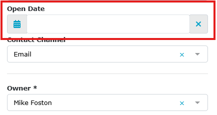 Open Date should always be the current date and time; simply select the date from the calendar pop-up.