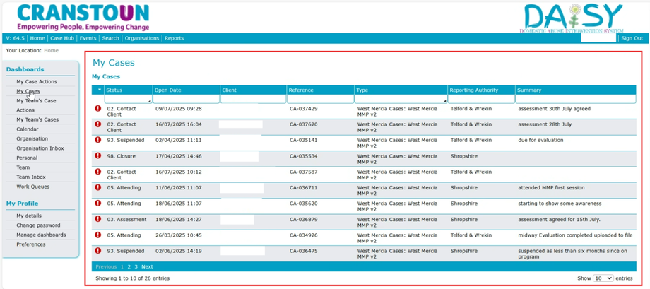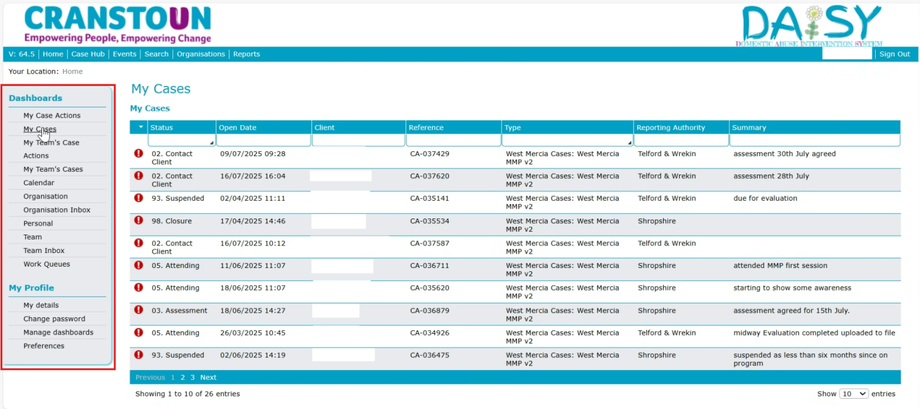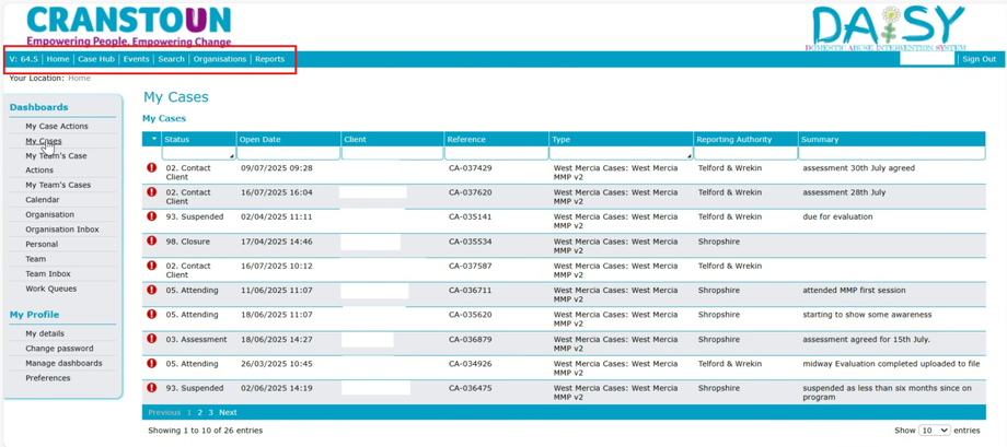 Most Daisy screens are divided into various zones; however, not all options may be visible to all staff. Click the header title to get more information on a specific section.