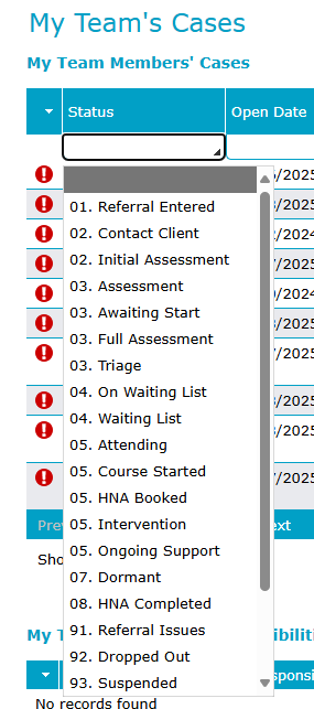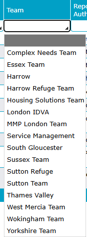 To view the cases allocated to a specific team, select the team from the dropdown list.