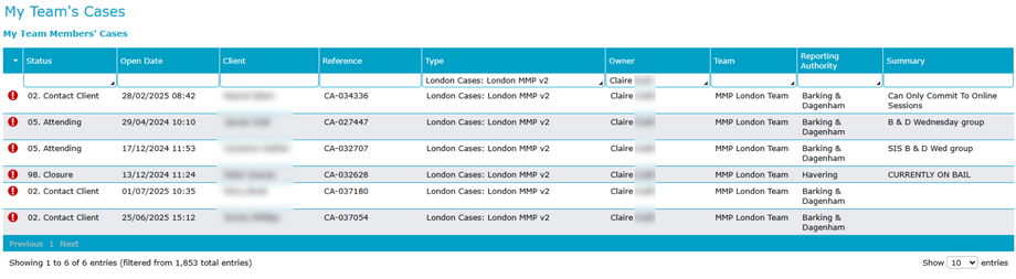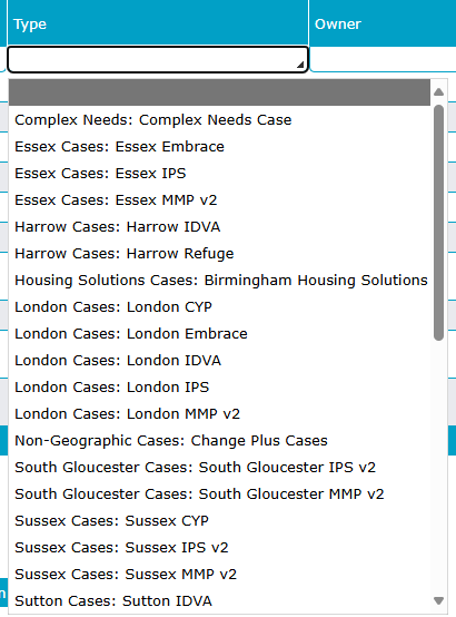 To view all cases allocated to a specific person, you can do so here. You can choose their name by selecting it from the dropdown list, or by partially typing it.