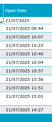 If you enter the date you are looking for, it will display all cases opened on that specific date. Note: You must enter the year as four digits.