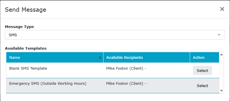 The Blank SMS template is the standard one, but it will only send between 9am and 5pm, any messages sent after 5pm will be sent at 9am the following day. If you need to send something outside 9am to 5pm, use the Emergency SMS.