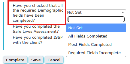 Once all the above answers have been supplied, you can complete the assessment. An option will then appear to let you move the case forward to Ongoing Support.