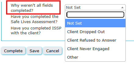 If you are unable to complete the demographics for any reason, choose from the two options with the most accurate response between Most Fields Complete or Required Fields Incomplete. You will be asked to provide a reason why they are incomplete from a dropdown list.