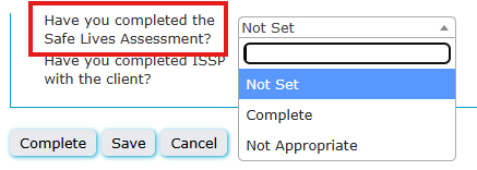 This may take several forms, depending on the level of contact you have with the client; however, it is essential in all cases that some level of Safety and Support planning occurs. This should be added to the system, either with notes or by attaching a copy of any document sent to the client.