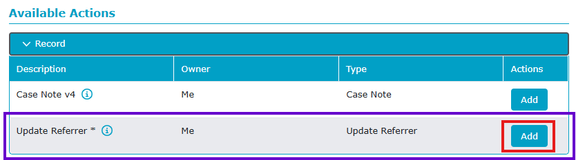 Case Action Available At: Perpetrator/Referral Entered | Victim/Referral Entered