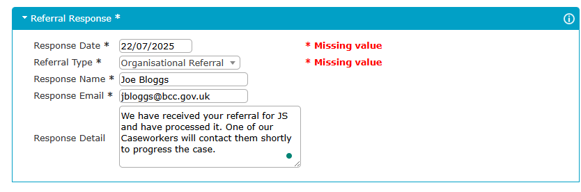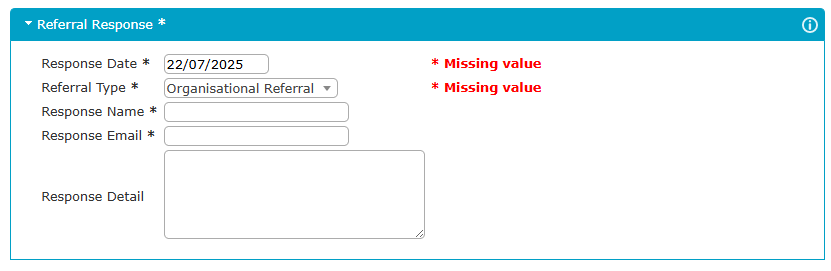 Referral Organisation: Select the appropriate organisation or type.