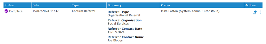 The case will now automatically progress from 'Referral Entered' to 'Contact Client'.