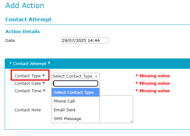 Once you have added a Contact Attempt to the system, you will have an option to move the case to referral issues if the contact information provided is incorrect, and we need to go back to the referrer for more details.